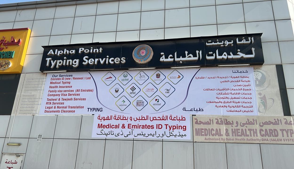 Visit Alpha Point, for getting Emirates Identity Card Application, DHA Medical test application, Full Family visa process inside/outside etc.